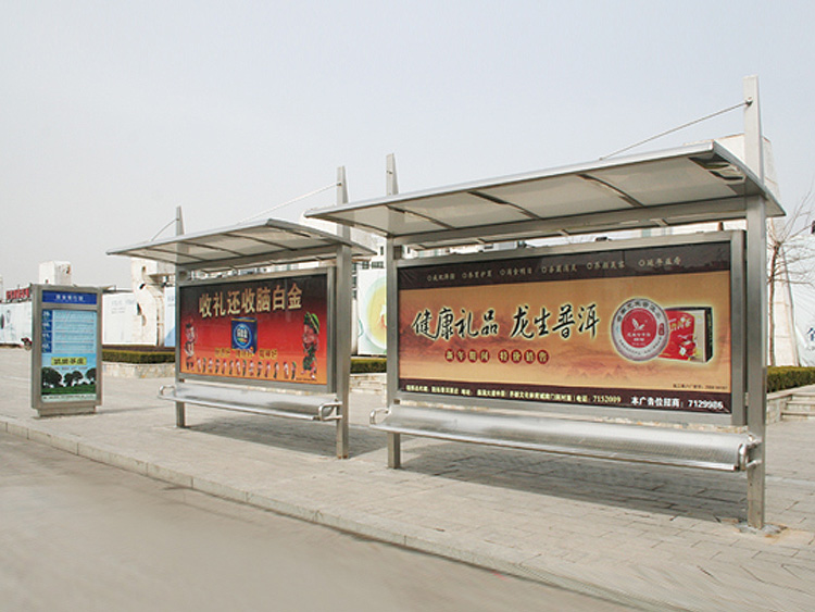 公交車候車亭一般是與公交站牌相配套的,為方便公交乘客候車時遮陽、防雨等,在車站、道路兩旁或綠化帶的港灣式公交?空旧辖ㄔO的交通設施。由于城市公交的日益發達,候車亭已發展成為城市一個不可或缺的重要組成部分,設計精美的候車亭也成為了城市一道美麗的風景。 一般候車亭棚體主要頂棚、立柱、頂弓、廣告燈箱和坐凳組成,也有用隔板來代替廣告燈箱的。