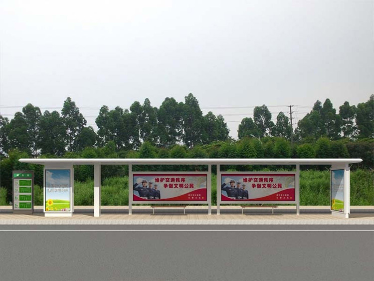 公交車候車亭一般是與公交站牌相配套的,為方便公交乘客候車時遮陽、防雨等,在車站、道路兩旁或綠化帶的港灣式公交停靠站上建設的交通設施。由于城市公交的日益發達,候車亭已發展成為城市一個不可或缺的重要組成部分,設計精美的候車亭也成為了城市一道美麗的風景。 一般候車亭棚體主要頂棚、立柱、頂弓、廣告燈箱和坐凳組成,也有用隔板來代替廣告燈箱的。