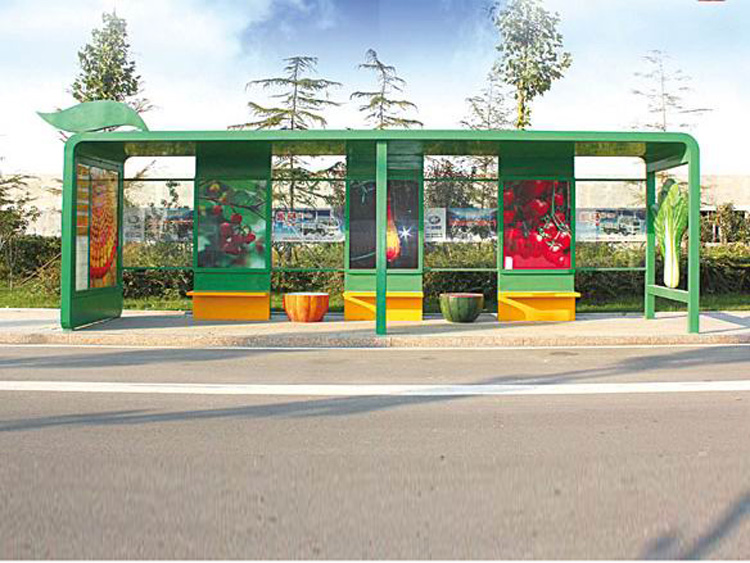 公交車候車亭一般是與公交站牌相配套的,為方便公交乘客候車時遮陽、防雨等,在車站、道路兩旁或綠化帶的港灣式公交停靠站上建設的交通設施。由于城市公交的日益發達,候車亭已發展成為城市一個不可或缺的重要組成部分,設計精美的候車亭也成為了城市一道美麗的風景。 一般候車亭棚體主要頂棚、立柱、頂弓、廣告燈箱和坐凳組成,也有用隔板來代替廣告燈箱的。