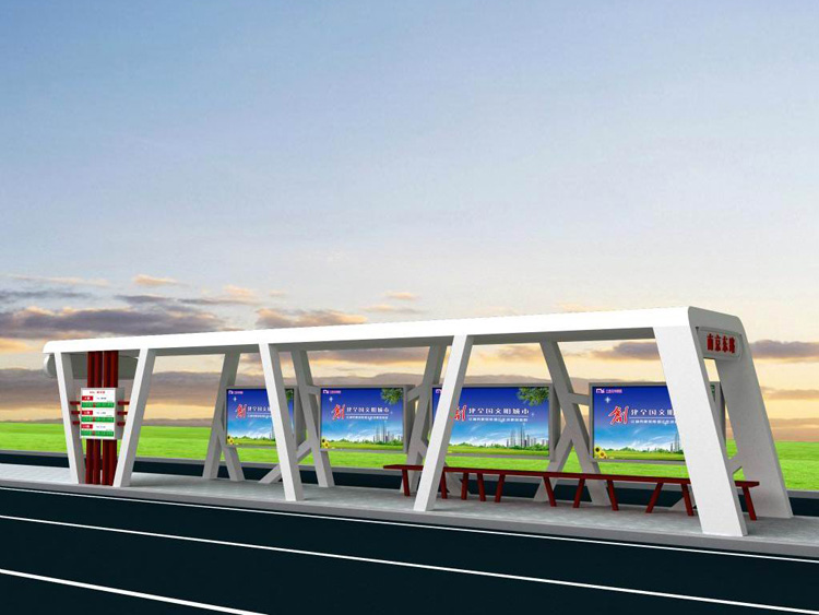 公交車候車亭一般是與公交站牌相配套的,為方便公交乘客候車時(shí)遮陽、防雨等,在車站、道路兩旁或綠化帶的港灣式公交停靠站上建設(shè)的交通設(shè)施。由于城市公交的日益發(fā)達(dá),候車亭已發(fā)展成為城市一個(gè)不可或缺的重要組成部分,設(shè)計(jì)精美的候車亭也成為了城市一道美麗的風(fēng)景。 一般候車亭棚體主要頂棚、立柱、頂弓、廣告燈箱和坐凳組成,也有用隔板來代替廣告燈箱的。