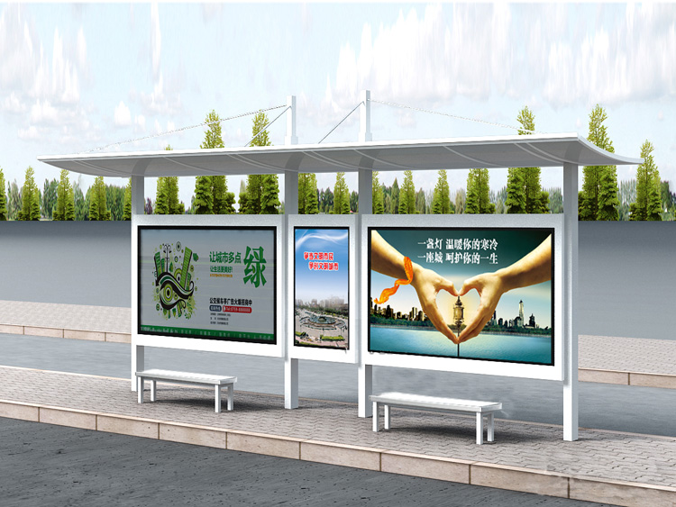 公交車候車亭一般是與公交站牌相配套的,為方便公交乘客候車時遮陽、防雨等,在車站、道路兩旁或綠化帶的港灣式公交停靠站上建設的交通設施。由于城市公交的日益發達,候車亭已發展成為城市一個不可或缺的重要組成部分,設計精美的候車亭也成為了城市一道美麗的風景。 一般候車亭棚體主要頂棚、立柱、頂弓、廣告燈箱和坐凳組成,也有用隔板來代替廣告燈箱的。