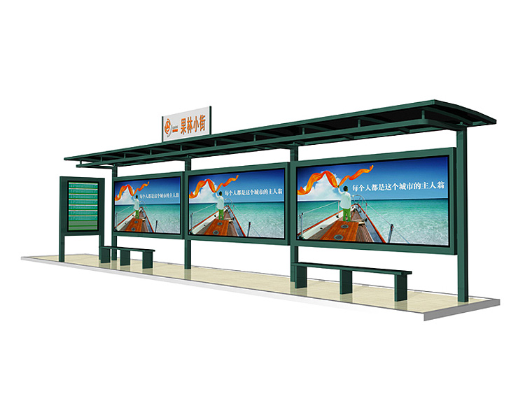 公交車候車亭一般是與公交站牌相配套的,為方便公交乘客候車時遮陽、防雨等,在車站、道路兩旁或綠化帶的港灣式公交停靠站上建設的交通設施。由于城市公交的日益發達,候車亭已發展成為城市一個不可或缺的重要組成部分,設計精美的候車亭也成為了城市一道美麗的風景。 一般候車亭棚體主要頂棚、立柱、頂弓、廣告燈箱和坐凳組成,也有用隔板來代替廣告燈箱的。