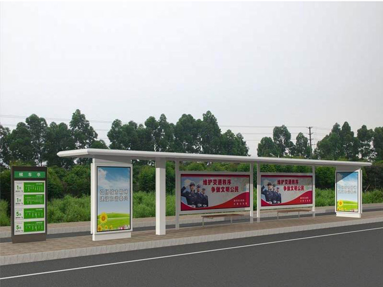 公交車候車亭一般是與公交站牌相配套的,為方便公交乘客候車時遮陽、防雨等,在車站、道路兩旁或綠化帶的港灣式公交停靠站上建設的交通設施。由于城市公交的日益發達,候車亭已發展成為城市一個不可或缺的重要組成部分,設計精美的候車亭也成為了城市一道美麗的風景。 一般候車亭棚體主要頂棚、立柱、頂弓、廣告燈箱和坐凳組成,也有用隔板來代替廣告燈箱的。
