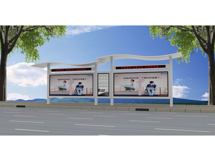 公交車候車亭一般是與公交站牌相配套的,為方便公交乘客候車時遮陽、防雨等,在車站、道路兩旁或綠化帶的港灣式公交停靠站上建設的交通設施。由于城市公交的日益發達,候車亭已發展成為城市一個不可或缺的重要組成部分,設計精美的候車亭也成為了城市一道美麗的風景。 一般候車亭棚體主要頂棚、立柱、頂弓、廣告燈箱和坐凳組成,也有用隔板來代替廣告燈箱的。
