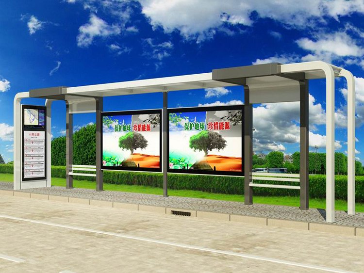 公交車候車亭一般是與公交站牌相配套的,為方便公交乘客候車時遮陽、防雨等,在車站、道路兩旁或綠化帶的港灣式公交停靠站上建設的交通設施。由于城市公交的日益發達,候車亭已發展成為城市一個不可或缺的重要組成部分,設計精美的候車亭也成為了城市一道美麗的風景。 一般候車亭棚體主要頂棚、立柱、頂弓、廣告燈箱和坐凳組成,也有用隔板來代替廣告燈箱的。
