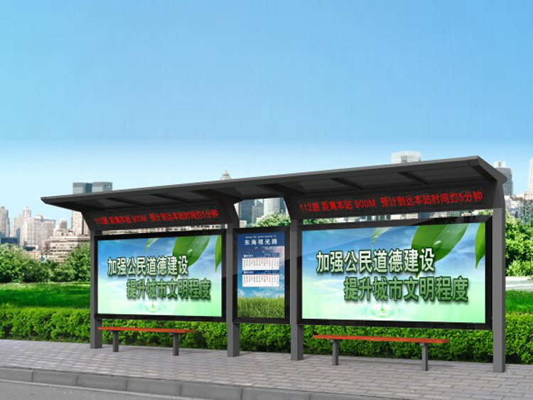 公交車候車亭一般是與公交站牌相配套的,為方便公交乘客候車時遮陽、防雨等,在車站、道路兩旁或綠化帶的港灣式公交?空旧辖ㄔO(shè)的交通設(shè)施。由于城市公交的日益發(fā)達(dá),候車亭已發(fā)展成為城市一個不可或缺的重要組成部分,設(shè)計精美的候車亭也成為了城市一道美麗的風(fēng)景。 一般候車亭棚體主要頂棚、立柱、頂弓、廣告燈箱和坐凳組成,也有用隔板來代替廣告燈箱的。