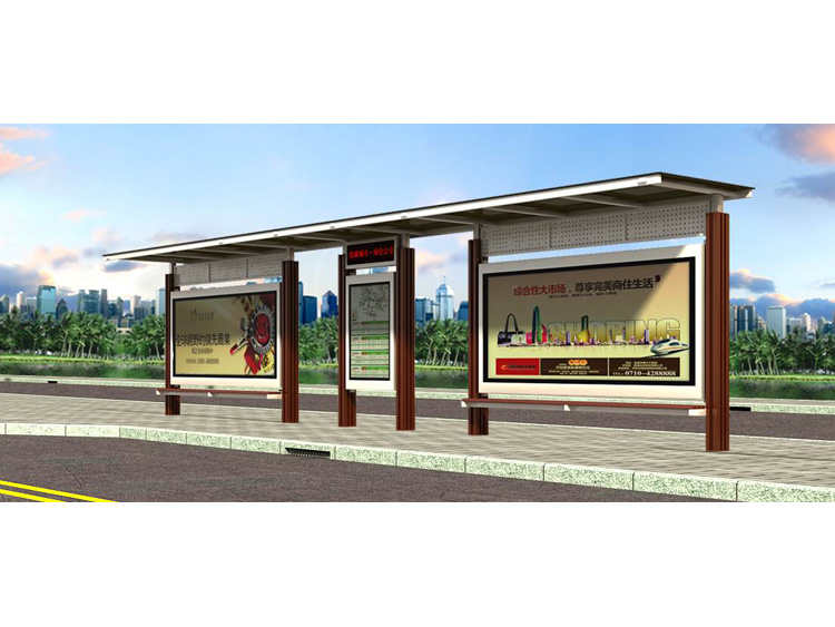 公交車候車亭一般是與公交站牌相配套的,為方便公交乘客候車時遮陽、防雨等,在車站、道路兩旁或綠化帶的港灣式公交停靠站上建設的交通設施。由于城市公交的日益發達,候車亭已發展成為城市一個不可或缺的重要組成部分,設計精美的候車亭也成為了城市一道美麗的風景。 一般候車亭棚體主要頂棚、立柱、頂弓、廣告燈箱和坐凳組成,也有用隔板來代替廣告燈箱的。
