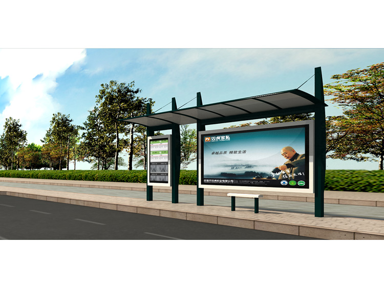 公交車候車亭一般是與公交站牌相配套的,為方便公交乘客候車時遮陽、防雨等,在車站、道路兩旁或綠化帶的港灣式公交?空旧辖ㄔO的交通設施。由于城市公交的日益發達,候車亭已發展成為城市一個不可或缺的重要組成部分,設計精美的候車亭也成為了城市一道美麗的風景。 一般候車亭棚體主要頂棚、立柱、頂弓、廣告燈箱和坐凳組成,也有用隔板來代替廣告燈箱的。