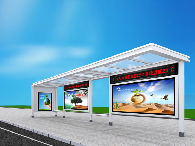 公交車候車亭一般是與公交站牌相配套的,為方便公交乘客候車時遮陽、防雨等,在車站、道路兩旁或綠化帶的港灣式公交停靠站上建設的交通設施。由于城市公交的日益發達,候車亭已發展成為城市一個不可或缺的重要組成部分,設計精美的候車亭也成為了城市一道美麗的風景。 一般候車亭棚體主要頂棚、立柱、頂弓、廣告燈箱和坐凳組成,也有用隔板來代替廣告燈箱的。