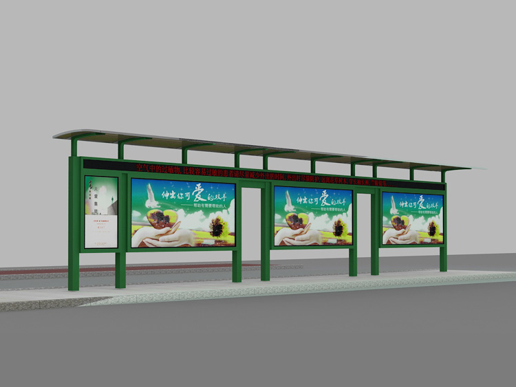 公交車候車亭一般是與公交站牌相配套的,為方便公交乘客候車時遮陽、防雨等,在車站、道路兩旁或綠化帶的港灣式公交停靠站上建設的交通設施。由于城市公交的日益發達,候車亭已發展成為城市一個不可或缺的重要組成部分,設計精美的候車亭也成為了城市一道美麗的風景。 一般候車亭棚體主要頂棚、立柱、頂弓、廣告燈箱和坐凳組成,也有用隔板來代替廣告燈箱的。