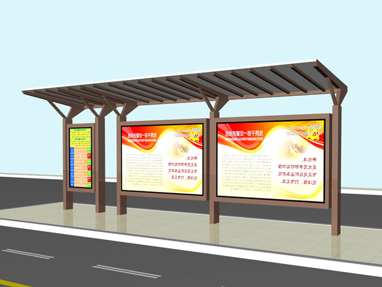 公交車候車亭一般是與公交站牌相配套的,為方便公交乘客候車時遮陽、防雨等,在車站、道路兩旁或綠化帶的港灣式公交停靠站上建設的交通設施。由于城市公交的日益發達,候車亭已發展成為城市一個不可或缺的重要組成部分,設計精美的候車亭也成為了城市一道美麗的風景。 一般候車亭棚體主要頂棚、立柱、頂弓、廣告燈箱和坐凳組成,也有用隔板來代替廣告燈箱的。