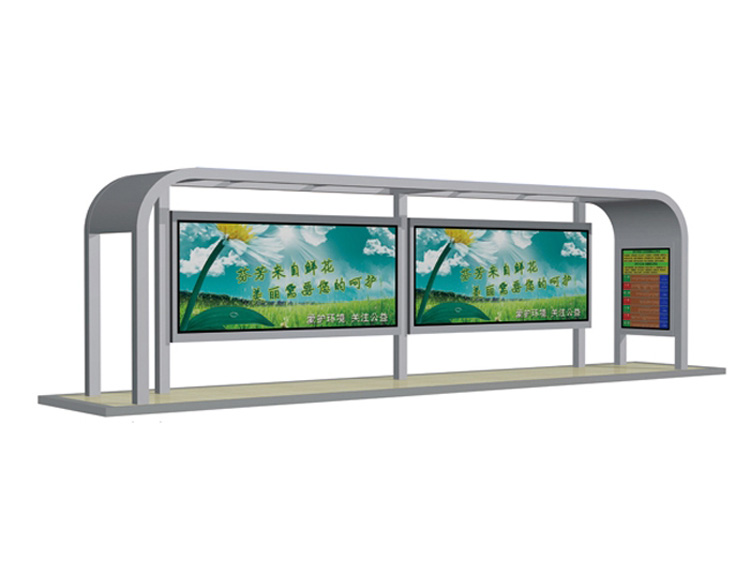 公交車候車亭一般是與公交站牌相配套的,為方便公交乘客候車時遮陽、防雨等,在車站、道路兩旁或綠化帶的港灣式公交停靠站上建設(shè)的交通設(shè)施。由于城市公交的日益發(fā)達(dá),候車亭已發(fā)展成為城市一個不可或缺的重要組成部分,設(shè)計精美的候車亭也成為了城市一道美麗的風(fēng)景。 一般候車亭棚體主要頂棚、立柱、頂弓、廣告燈箱和坐凳組成,也有用隔板來代替廣告燈箱的。