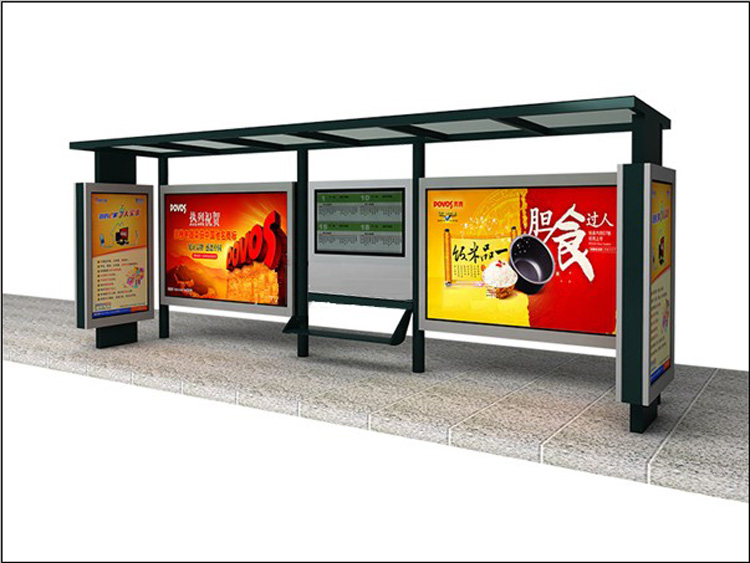 公交車候車亭一般是與公交站牌相配套的,為方便公交乘客候車時遮陽、防雨等,在車站、道路兩旁或綠化帶的港灣式公交停靠站上建設(shè)的交通設(shè)施。由于城市公交的日益發(fā)達,候車亭已發(fā)展成為城市一個不可或缺的重要組成部分,設(shè)計精美的候車亭也成為了城市一道美麗的風景。 一般候車亭棚體主要頂棚、立柱、頂弓、廣告燈箱和坐凳組成,也有用隔板來代替廣告燈箱的。