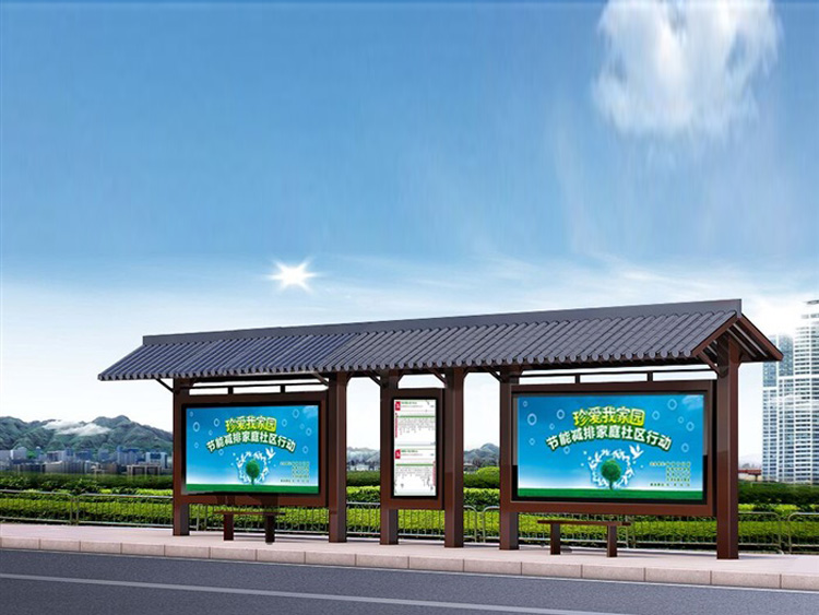 公交車候車亭一般是與公交站牌相配套的,為方便公交乘客候車時(shí)遮陽(yáng)、防雨等,在車站、道路兩旁或綠化帶的港灣式公交停靠站上建設(shè)的交通設(shè)施。由于城市公交的日益發(fā)達(dá),候車亭已發(fā)展成為城市一個(gè)不可或缺的重要組成部分,設(shè)計(jì)精美的候車亭也成為了城市一道美麗的風(fēng)景。 一般候車亭棚體主要頂棚、立柱、頂弓、廣告燈箱和坐凳組成,也有用隔板來(lái)代替廣告燈箱的。