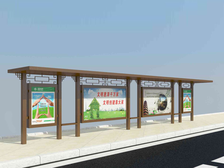 公交車候車亭一般是與公交站牌相配套的,為方便公交乘客候車時遮陽、防雨等,在車站、道路兩旁或綠化帶的港灣式公交停靠站上建設的交通設施。由于城市公交的日益發達,候車亭已發展成為城市一個不可或缺的重要組成部分,設計精美的候車亭也成為了城市一道美麗的風景。 一般候車亭棚體主要頂棚、立柱、頂弓、廣告燈箱和坐凳組成,也有用隔板來代替廣告燈箱的。