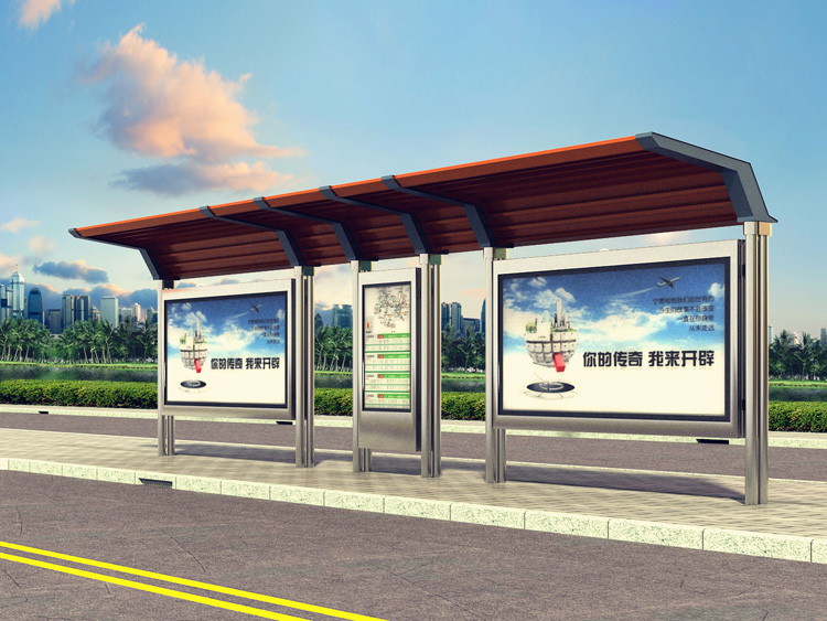 公交車候車亭一般是與公交站牌相配套的,為方便公交乘客候車時遮陽、防雨等,在車站、道路兩旁或綠化帶的港灣式公交停靠站上建設(shè)的交通設(shè)施。由于城市公交的日益發(fā)達,候車亭已發(fā)展成為城市一個不可或缺的重要組成部分,設(shè)計精美的候車亭也成為了城市一道美麗的風景。 一般候車亭棚體主要頂棚、立柱、頂弓、廣告燈箱和坐凳組成,也有用隔板來代替廣告燈箱的。