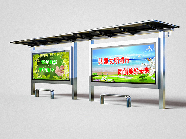 公交車候車亭一般是與公交站牌相配套的,為方便公交乘客候車時遮陽、防雨等,在車站、道路兩旁或綠化帶的港灣式公交停靠站上建設的交通設施。由于城市公交的日益發達,候車亭已發展成為城市一個不可或缺的重要組成部分,設計精美的候車亭也成為了城市一道美麗的風景。 一般候車亭棚體主要頂棚、立柱、頂弓、廣告燈箱和坐凳組成,也有用隔板來代替廣告燈箱的。