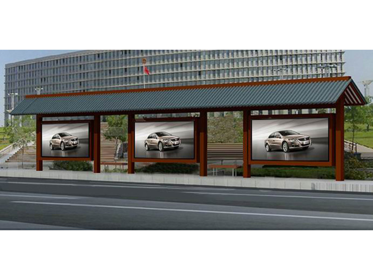 公交車候車亭一般是與公交站牌相配套的,為方便公交乘客候車時遮陽、防雨等,在車站、道路兩旁或綠化帶的港灣式公交停靠站上建設(shè)的交通設(shè)施。由于城市公交的日益發(fā)達(dá),候車亭已發(fā)展成為城市一個不可或缺的重要組成部分,設(shè)計精美的候車亭也成為了城市一道美麗的風(fēng)景。 一般候車亭棚體主要頂棚、立柱、頂弓、廣告燈箱和坐凳組成,也有用隔板來代替廣告燈箱的。