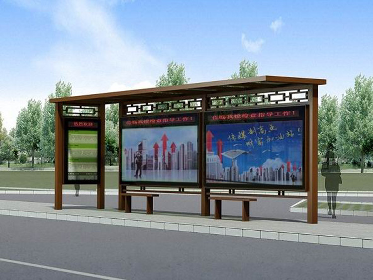 公交車候車亭一般是與公交站牌相配套的,為方便公交乘客候車時遮陽、防雨等,在車站、道路兩旁或綠化帶的港灣式公交停靠站上建設的交通設施。由于城市公交的日益發達,候車亭已發展成為城市一個不可或缺的重要組成部分,設計精美的候車亭也成為了城市一道美麗的風景。 一般候車亭棚體主要頂棚、立柱、頂弓、廣告燈箱和坐凳組成,也有用隔板來代替廣告燈箱的。