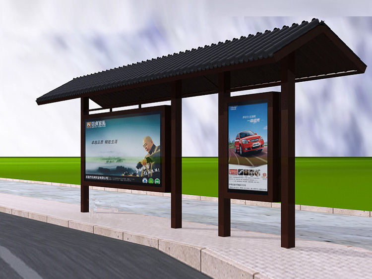 公交車候車亭一般是與公交站牌相配套的,為方便公交乘客候車時遮陽、防雨等,在車站、道路兩旁或綠化帶的港灣式公交停靠站上建設的交通設施。由于城市公交的日益發達,候車亭已發展成為城市一個不可或缺的重要組成部分,設計精美的候車亭也成為了城市一道美麗的風景。 一般候車亭棚體主要頂棚、立柱、頂弓、廣告燈箱和坐凳組成,也有用隔板來代替廣告燈箱的。