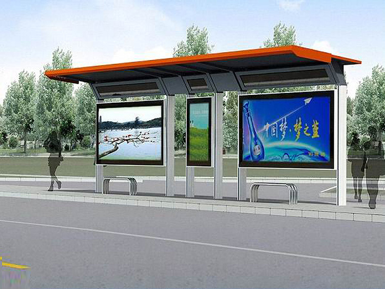 公交車候車亭一般是與公交站牌相配套的,為方便公交乘客候車時(shí)遮陽、防雨等,在車站、道路兩旁或綠化帶的港灣式公交停靠站上建設(shè)的交通設(shè)施。由于城市公交的日益發(fā)達(dá),候車亭已發(fā)展成為城市一個(gè)不可或缺的重要組成部分,設(shè)計(jì)精美的候車亭也成為了城市一道美麗的風(fēng)景。 一般候車亭棚體主要頂棚、立柱、頂弓、廣告燈箱和坐凳組成,也有用隔板來代替廣告燈箱的。