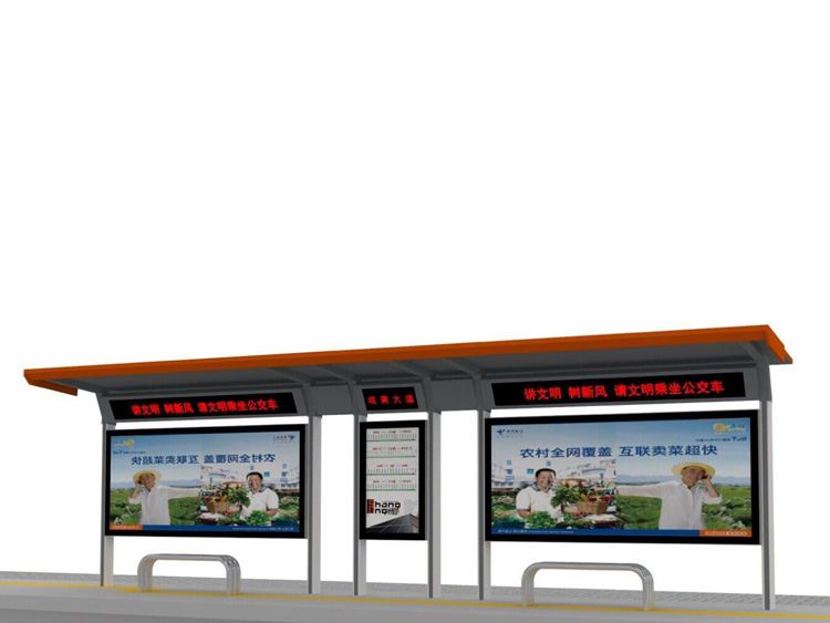 公交車候車亭一般是與公交站牌相配套的,為方便公交乘客候車時遮陽、防雨等,在車站、道路兩旁或綠化帶的港灣式公交停靠站上建設的交通設施。由于城市公交的日益發達,候車亭已發展成為城市一個不可或缺的重要組成部分,設計精美的候車亭也成為了城市一道美麗的風景。 一般候車亭棚體主要頂棚、立柱、頂弓、廣告燈箱和坐凳組成,也有用隔板來代替廣告燈箱的。