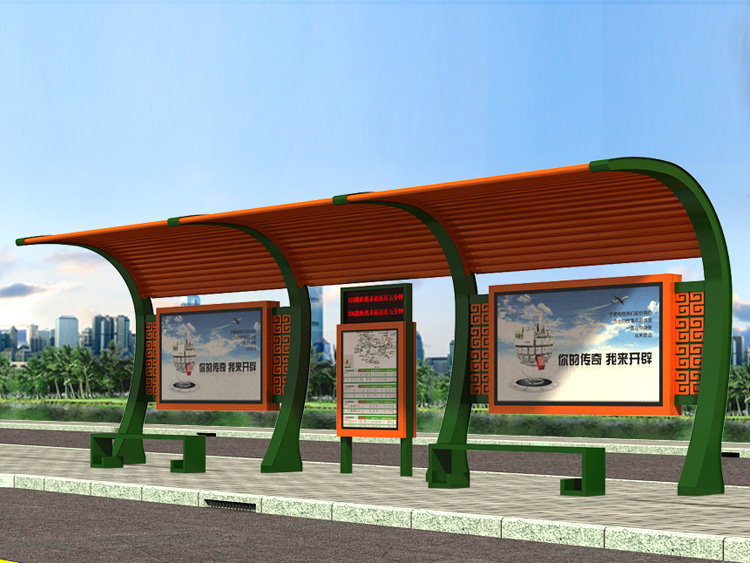 公交車候車亭一般是與公交站牌相配套的,為方便公交乘客候車時遮陽、防雨等,在車站、道路兩旁或綠化帶的港灣式公交停靠站上建設的交通設施。由于城市公交的日益發達,候車亭已發展成為城市一個不可或缺的重要組成部分,設計精美的候車亭也成為了城市一道美麗的風景。 一般候車亭棚體主要頂棚、立柱、頂弓、廣告燈箱和坐凳組成,也有用隔板來代替廣告燈箱的。