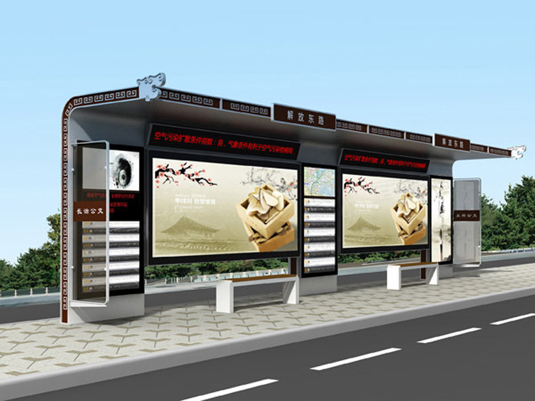 公交車候車亭一般是與公交站牌相配套的,為方便公交乘客候車時遮陽、防雨等,在車站、道路兩旁或綠化帶的港灣式公交停靠站上建設的交通設施。由于城市公交的日益發達,候車亭已發展成為城市一個不可或缺的重要組成部分,設計精美的候車亭也成為了城市一道美麗的風景。 一般候車亭棚體主要頂棚、立柱、頂弓、廣告燈箱和坐凳組成,也有用隔板來代替廣告燈箱的。