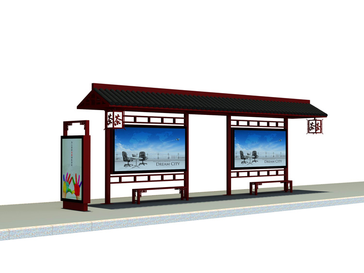 公交車候車亭一般是與公交站牌相配套的,為方便公交乘客候車時遮陽、防雨等,在車站、道路兩旁或綠化帶的港灣式公交停靠站上建設的交通設施。由于城市公交的日益發達,候車亭已發展成為城市一個不可或缺的重要組成部分,設計精美的候車亭也成為了城市一道美麗的風景。 一般候車亭棚體主要頂棚、立柱、頂弓、廣告燈箱和坐凳組成,也有用隔板來代替廣告燈箱的。