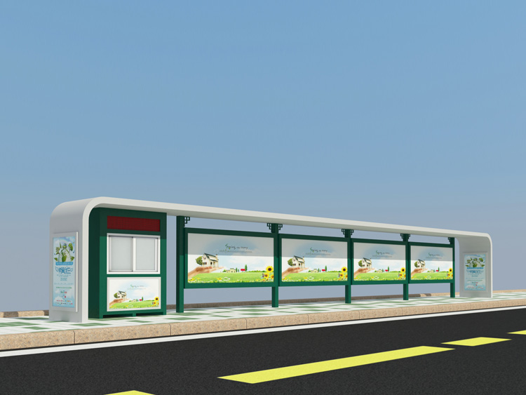 公交車候車亭一般是與公交站牌相配套的,為方便公交乘客候車時遮陽、防雨等,在車站、道路兩旁或綠化帶的港灣式公交?空旧辖ㄔO(shè)的交通設(shè)施。由于城市公交的日益發(fā)達,候車亭已發(fā)展成為城市一個不可或缺的重要組成部分,設(shè)計精美的候車亭也成為了城市一道美麗的風景。 一般候車亭棚體主要頂棚、立柱、頂弓、廣告燈箱和坐凳組成,也有用隔板來代替廣告燈箱的。