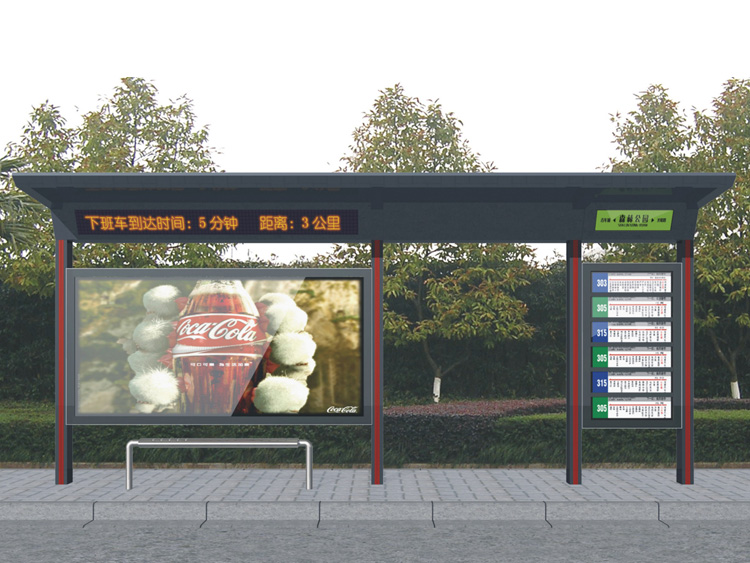 公交車候車亭一般是與公交站牌相配套的,為方便公交乘客候車時(shí)遮陽、防雨等,在車站、道路兩旁或綠化帶的港灣式公交停靠站上建設(shè)的交通設(shè)施。由于城市公交的日益發(fā)達(dá),候車亭已發(fā)展成為城市一個(gè)不可或缺的重要組成部分,設(shè)計(jì)精美的候車亭也成為了城市一道美麗的風(fēng)景。 一般候車亭棚體主要頂棚、立柱、頂弓、廣告燈箱和坐凳組成,也有用隔板來代替廣告燈箱的。