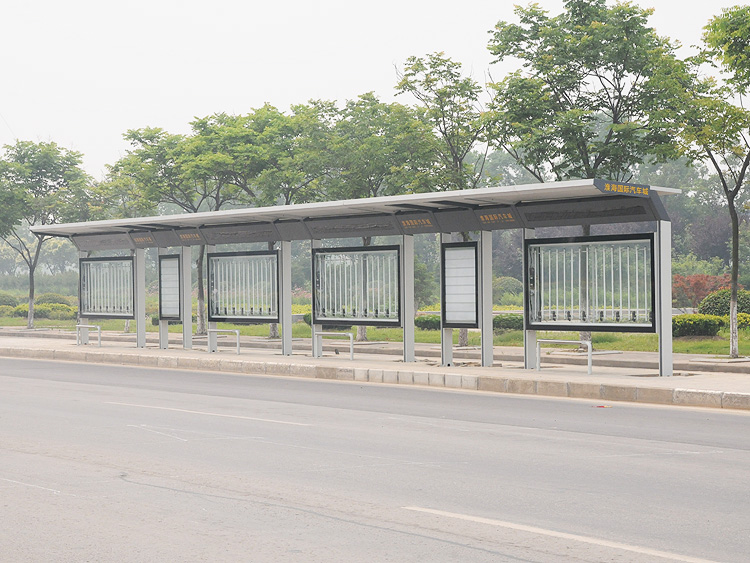 公交車候車亭一般是與公交站牌相配套的,為方便公交乘客候車時遮陽、防雨等,在車站、道路兩旁或綠化帶的港灣式公交停靠站上建設的交通設施。由于城市公交的日益發達,候車亭已發展成為城市一個不可或缺的重要組成部分,設計精美的候車亭也成為了城市一道美麗的風景。 一般候車亭棚體主要頂棚、立柱、頂弓、廣告燈箱和坐凳組成,也有用隔板來代替廣告燈箱的。