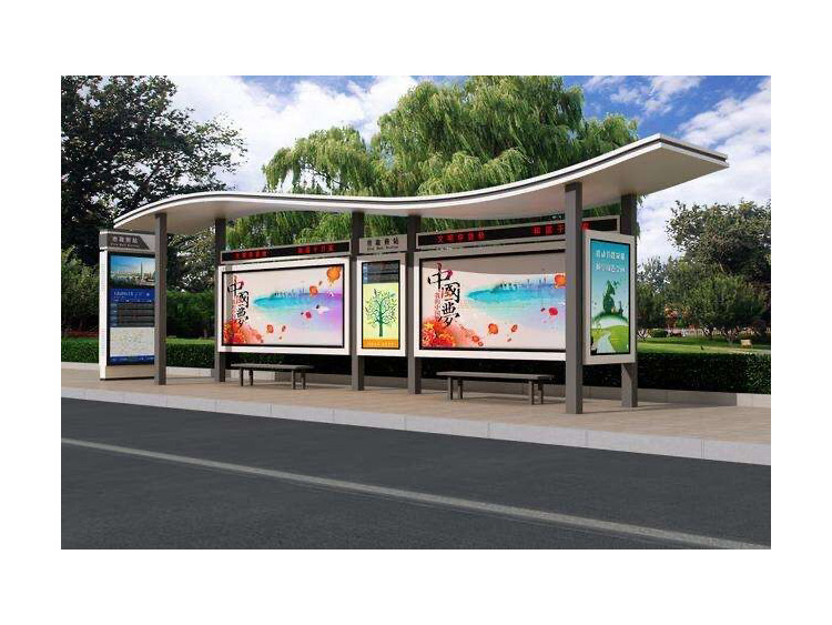 公交車候車亭一般是與公交站牌相配套的,為方便公交乘客候車時遮陽、防雨等,在車站、道路兩旁或綠化帶的港灣式公交停靠站上建設的交通設施。由于城市公交的日益發(fā)達,候車亭已發(fā)展成為城市一個不可或缺的重要組成部分,設計精美的候車亭也成為了城市一道美麗的風景。 一般候車亭棚體主要頂棚、立柱、頂弓、廣告燈箱和坐凳組成,也有用隔板來代替廣告燈箱的。