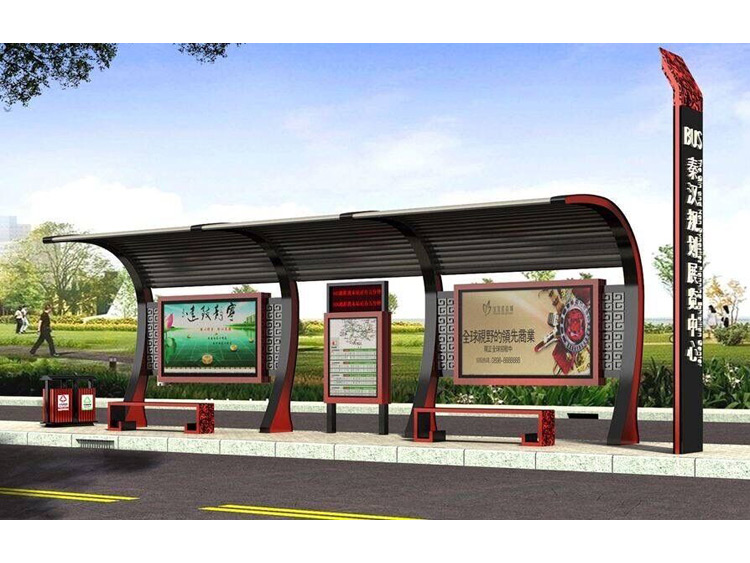 公交車候車亭一般是與公交站牌相配套的,為方便公交乘客候車時遮陽、防雨等,在車站、道路兩旁或綠化帶的港灣式公交停靠站上建設的交通設施。由于城市公交的日益發達,候車亭已發展成為城市一個不可或缺的重要組成部分,設計精美的候車亭也成為了城市一道美麗的風景。 一般候車亭棚體主要頂棚、立柱、頂弓、廣告燈箱和坐凳組成,也有用隔板來代替廣告燈箱的。